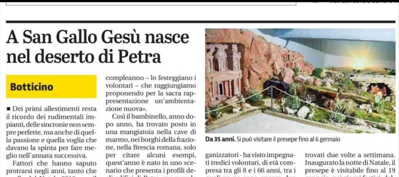 Il Presepio dell'Oratorio San Gallo è una tradizione molto sentita dalla comunità. Ogni anno, con passione e dedizione, viene realizzato un presepe unico, ricco di dettagli e significato.